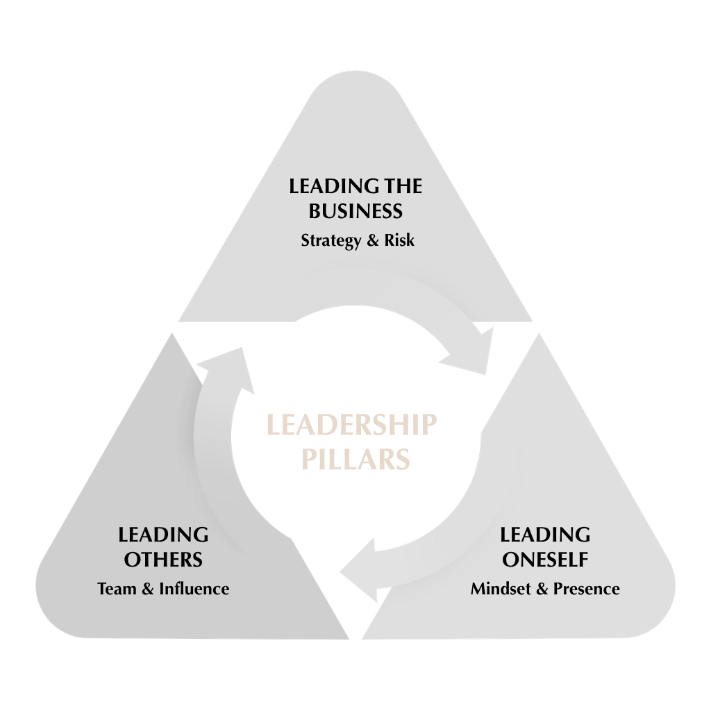 Our programming is built around a three-pillar leadership framework designed to help General Counsel grow as executive leaders supporting immediate challenges while building long-term leadership capability.